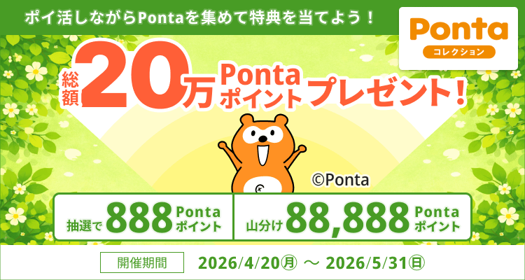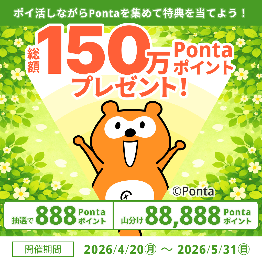 ポイ活しながら、豪華景品が当たるチャンス!全国に散らばるPontaを集めて、純金カードを当てよう!毎月抽選で3名様にプレゼント!